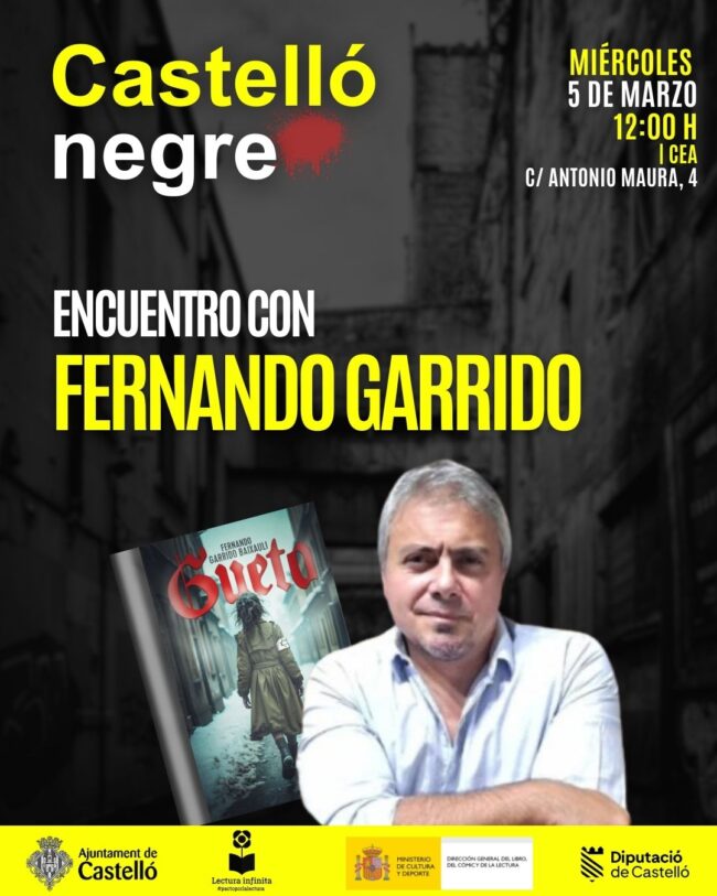MIÉRCOLES 5 DE MARZO A LAS 12:00H ENCUENTRO CON FERNANDO GARRIDO AUTOR DE LA NOVELA «GUETO». FESTIVAL DE NOVELA NEGRA Y POLICIACA DE LA CIUDAD DE CASTELLÓN, CASTELLÓ NEGRE. No es necesaria inscripción previa.