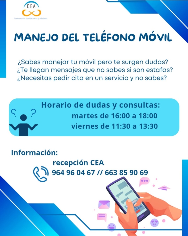 Las actividades se desarrollarán de modo puntual durante el curso, teniendo una duración entre 1 y 2 horas actividad. Se requiere para su participación, inscripción a previa a la actividad, siendo de carácter gratuito con una participación limitada según aforo por cada actividad. Las fechas y horarios serán expuestos previamente. Para más información contactar con recepción o llamar al siguiente teléfono de contacto: 964 960 467